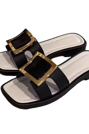 leather shoes Gold button luxury flat sandals for women and ladies fashions chaussures pour femmes