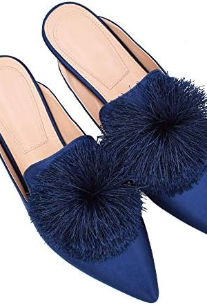 Backless Flats Puff Pompom Pointed Toe Casual Shoes Slippers
