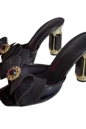 Black Diamond Rhinestone Luxury Fashion Sandals Women Open Toe Butterfly Jewelry High Heel Shoes